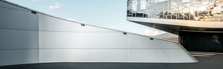 Das Plateau gliedert als eine Zäsur das Gebäude. Hier wurde vorwiegend die PREFA Verbundplatte im gebürsteten Aluminium eingesetzt. Die Architekten suchten ein flexibles Material, das die technischen Einrichtungen des Gebäudes perfekt integriert. Das Gebäude wird heute von den Innsbruckern sehr positiv angenommen. „Wir wollten mit anspruchsvoller Architektur alle Gesellschaftsschichten ansprechen und gleichzeitig einen Stadtteil aktivieren“, betont Ludin abschließend.