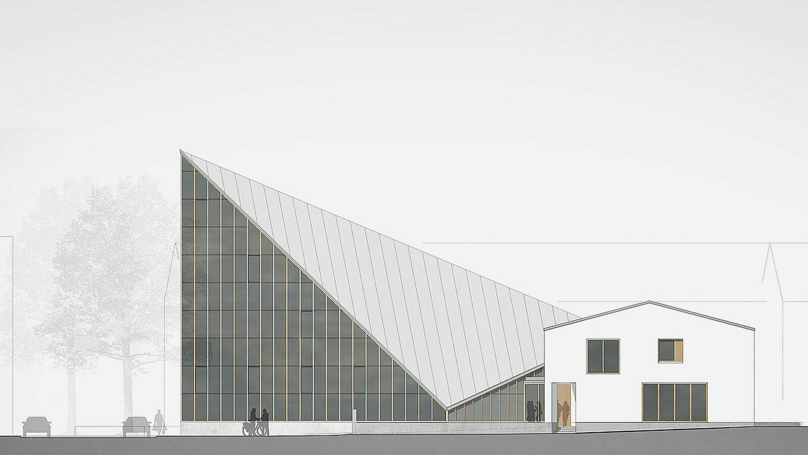 Köln-Riehl (DE). – Ein zugewachsenes Grundstück, darauf eine sichtlich in die Jahre gekommene Kirche mit zwei dreieckigen Dachflächen, die vom First spitz nach unten verlaufen. Große Überstände befinden sich an den gläsernen Südwest- und Südostfassaden, unter ihnen ein großflächiges, mächtiges Glaskunstwerk hinter blindgewordenen Plexiglastafeln. Daran angrenzend ein Gemeindezentrum, das nicht mehr mit der Entwicklung der Gemeinde mithalten kann. „Das Gebäude war nicht sanierungsfähig, da es sehr niedrig und in einem schlechten Zustand war. Man vernichtet dadurch zwar graue Energie, aber in diesem Fall haben wir gesagt, wir entscheiden uns für einen Neubau, der eine skulpturale, grafische Kraft erhält und mit zusätzlichen Flächen, Jugendräumen, Mehrzweckräumen sowie drei rollstuhlgerechten Wohnungen einen Mehrwert für Quartier und Nutzer bringt“, erzählt Klaus Zeller, der das Projekt leitete.