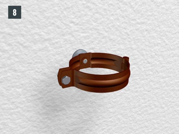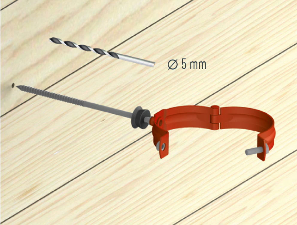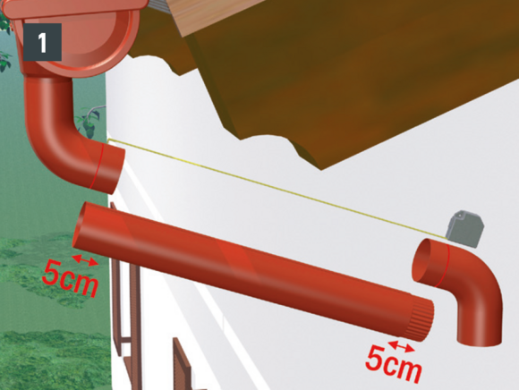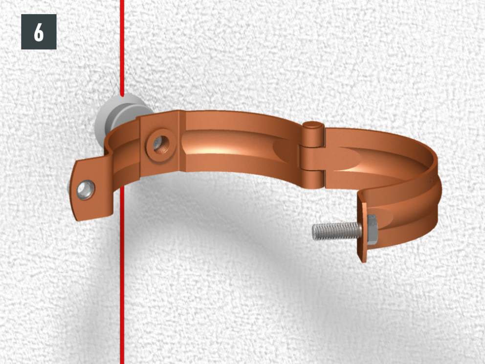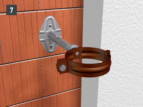 Die Montage der Ablaufrohre erfolgt mit Rohrschellen. Entsprechend dem Untergrund (Fassadenfläche) sind geeignete Befestigungsmittel für die Rohrschellen zu wählen.