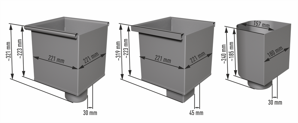 Wasserfangkästen sind mit geeigneten Befestigungsmitteln an der Fassade zu montieren, welche an den jeweiligen Untergrund anzupassen sind.