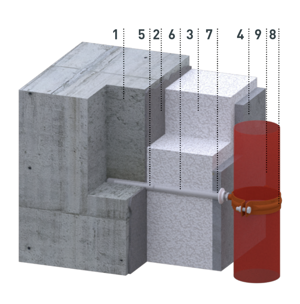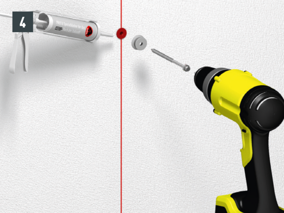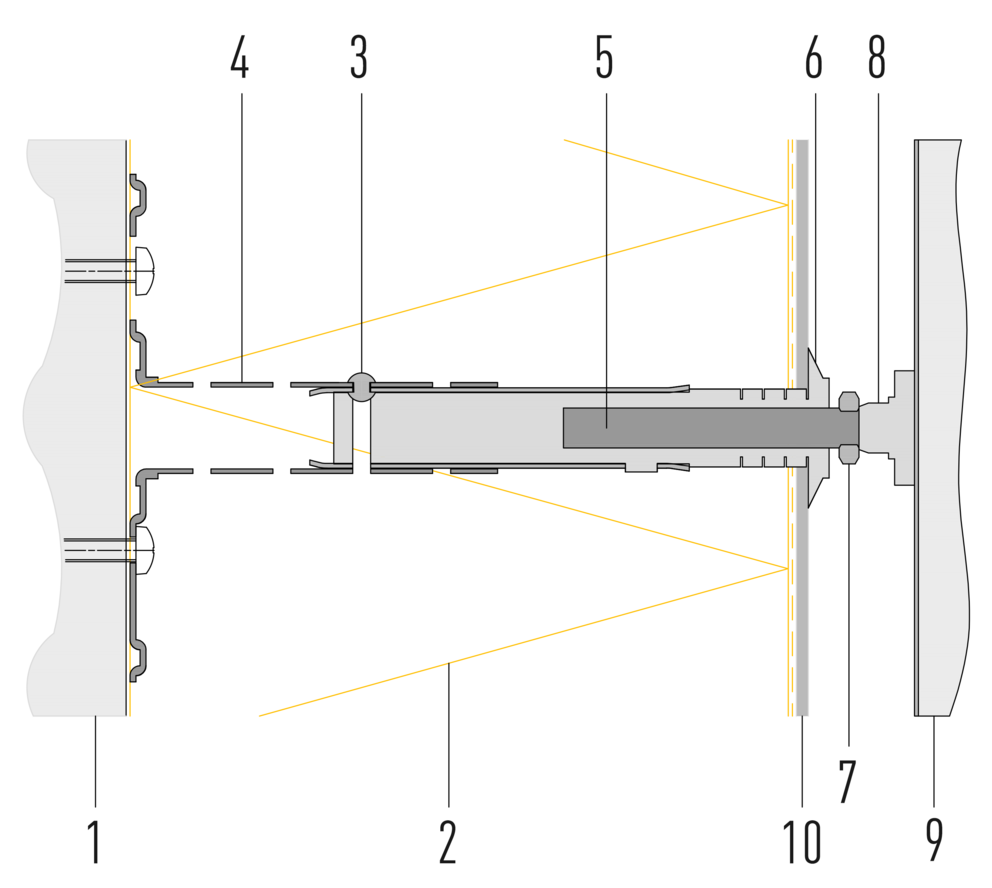 Zur Verwendung bei bestehenden WDVS-Fassaden (Dämmstärke 50–200 mm möglich, Verankerungstiefe im Mauerwerk mind.: 70 mm).