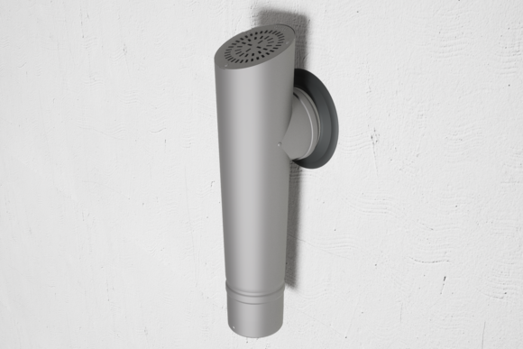 Der Abstand zwischen PREFA Ablaufrohr und Fassadenfläche muss mind. 20 mm betragen. Bei Verwendung des Quadratrohres einen Abstand zwischen Wand und Quadratrohr von mind. 45 mm einhalten.