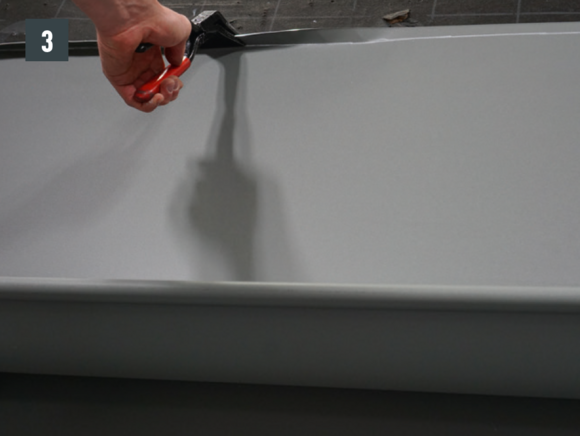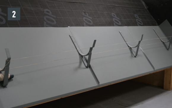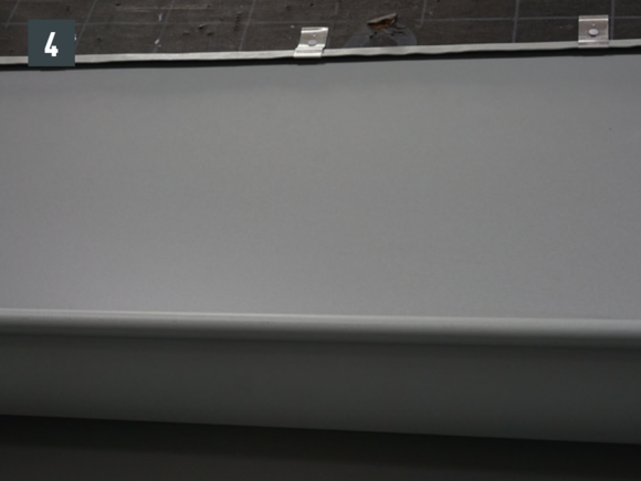 Fälze so weit umlegen, dass die Saumrinne mind. 15 cm auf dem Saumblech aufliegt. Gefälle beachten.