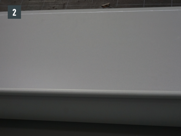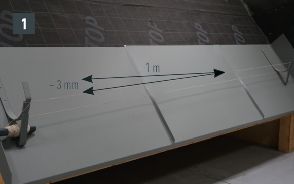 Die PREFA Saumrinne ist im Allgemeinen mit einem Mindestgefälle von 3 mm/m zu planen. In besonderen Fällen kann die PREFA Saumrinne jedoch auch ohne Gefälle geplant werden.