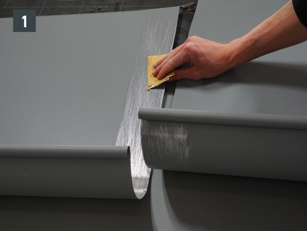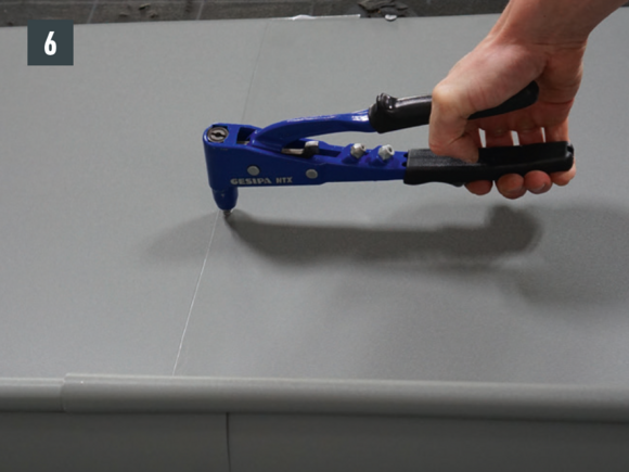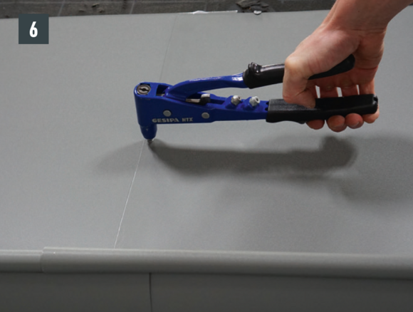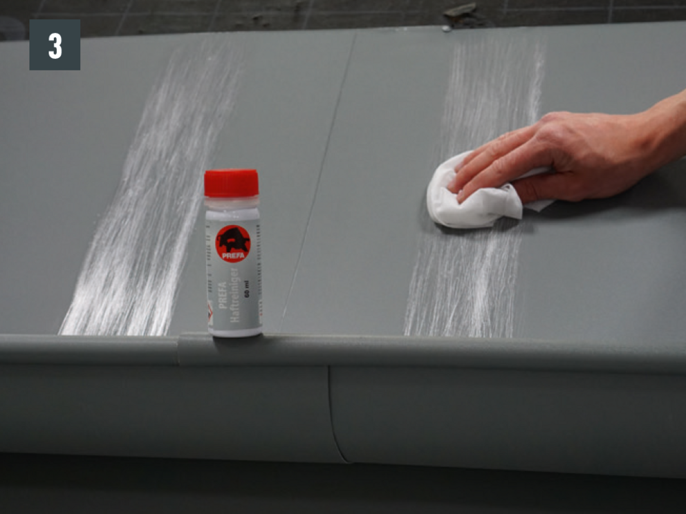 Die Verbindung kann als Klebe- oder Nietverbindung hergestellt werden. Genietete Verbindungen sind zusätzlich mit PREFA Spezialsilikon abzudichten.