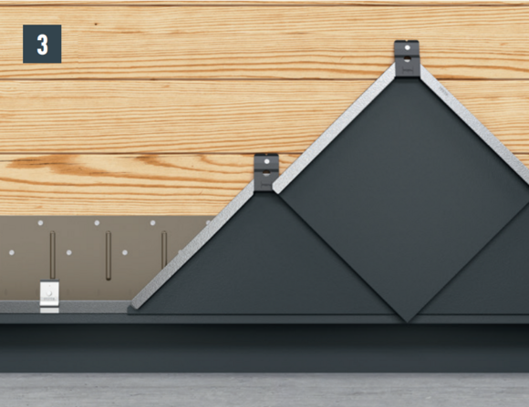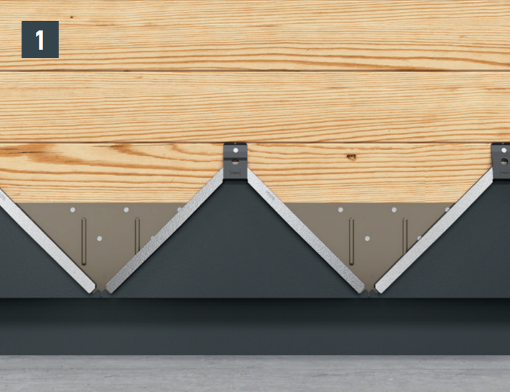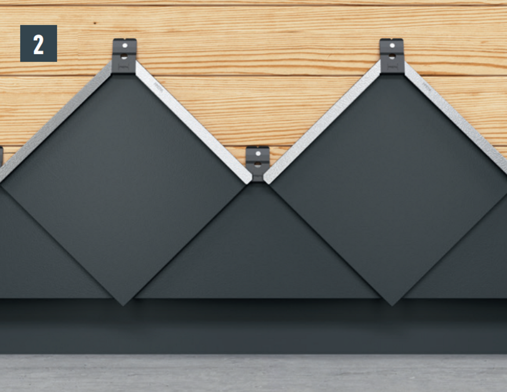 Die Befestigung jeder Wandraute 29 × 29 erfolgt mit einem Haft und einem mitgelieferten Rillennagel 2,8/25.