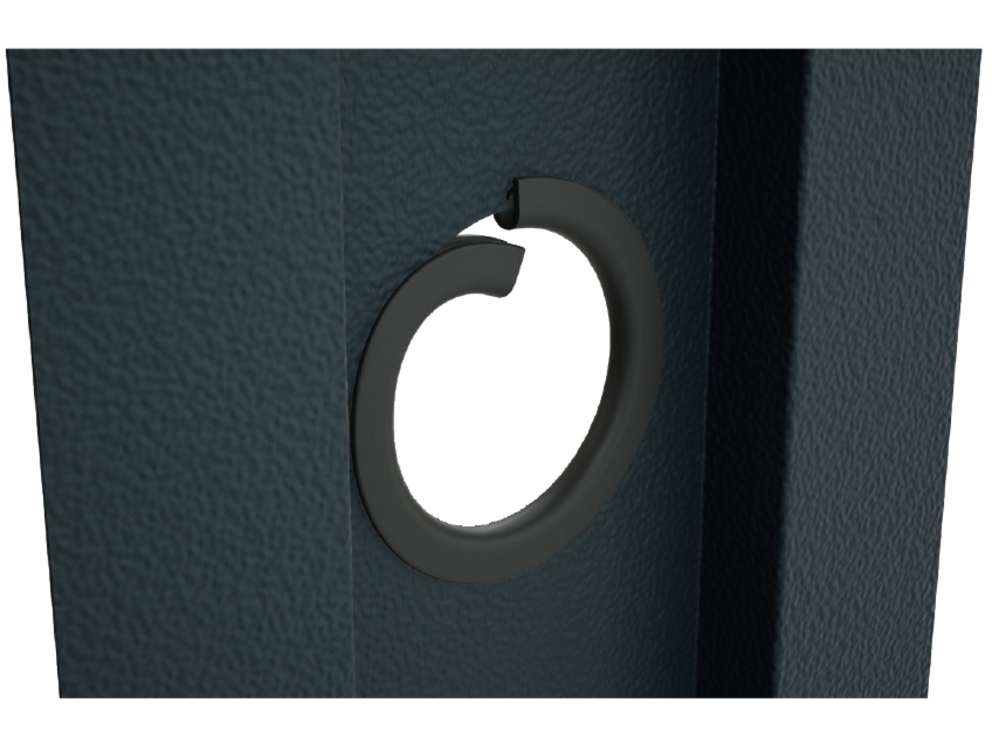 Der bei den Solardachplatten mitgelieferte Kantenschutz ist in die mit einem Dosenbohrer hergestellte Öffnung des Kabelkanals einzusetzen. Er schützt die Kabel davor, an der offenen Blechkante beschädigt zu werden. Durch das Einsetzen des Kantenschutzes wird eine sichere Kabelverlegung gewährleistet und verhindert, dass die Kabel bei Bewegung oder Vibration beschädigt werden.