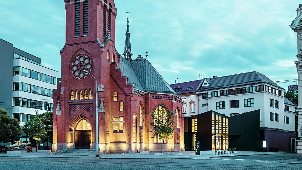 Wer durch Olmütz geht, spürt sofort die besondere Atmosphäre zwischen der historischen Altstadt, der Roten Kirche und der Forschungsbibliothek. Genau hier entstand 2023 ein Neubau, der die beiden Gebäude auf eindrucksvolle Weise verbindet. Atelier-r, s.r.o ergänzte das Ensemble mit einem Baukörper, der die historische Umgebung respektiert und zugleich eine zeitgemässe Form einführt. Architekt Miroslav Pospíšil beschreibt den Entwurf als Arbeiten zwischen Vergangenheit und Gegenwart, bei dem die Kirche ihr äusseres Bild behalten sollte und der Neubau einen ruhigen, eigenständigen Ausdruck erhält.