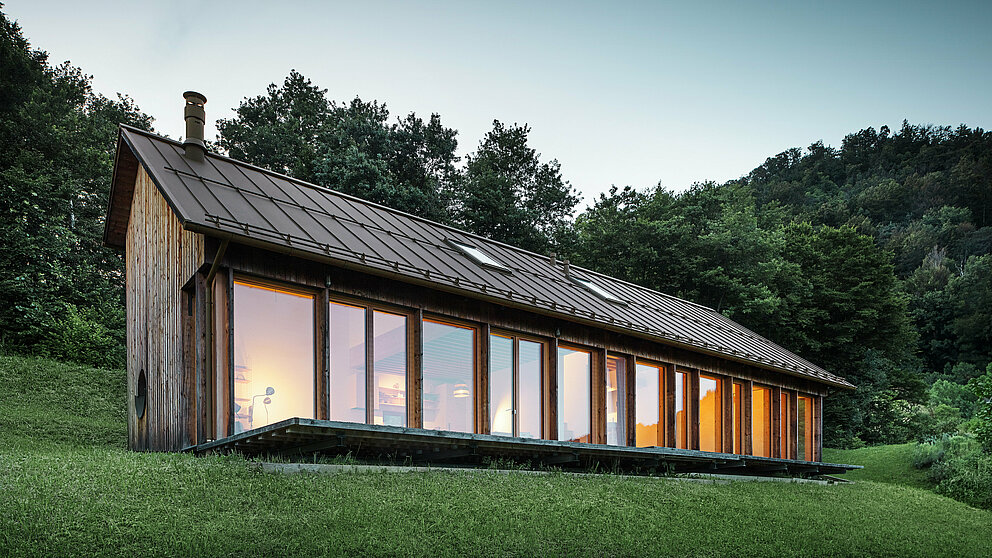 „Material und Farbe strahlen Wärme aus. Die Architekten haben das Haus hervorragend in die Landschaft eingefügt“, fasst Kralj es in wenigen Worten zusammen und gibt auch noch einen nachhaltigen Tipp: „Besonderes Potenzial liegt meiner Meinung im passenden Solarmodul PREFALZ.“ Dabei kämen zwar ausschließlich standardisierte Scharenbreiten zum Einsatz, aber das sei genau die Lösung, die es braucht, um in Zukunft energieautarke Gebäude zu realisieren.