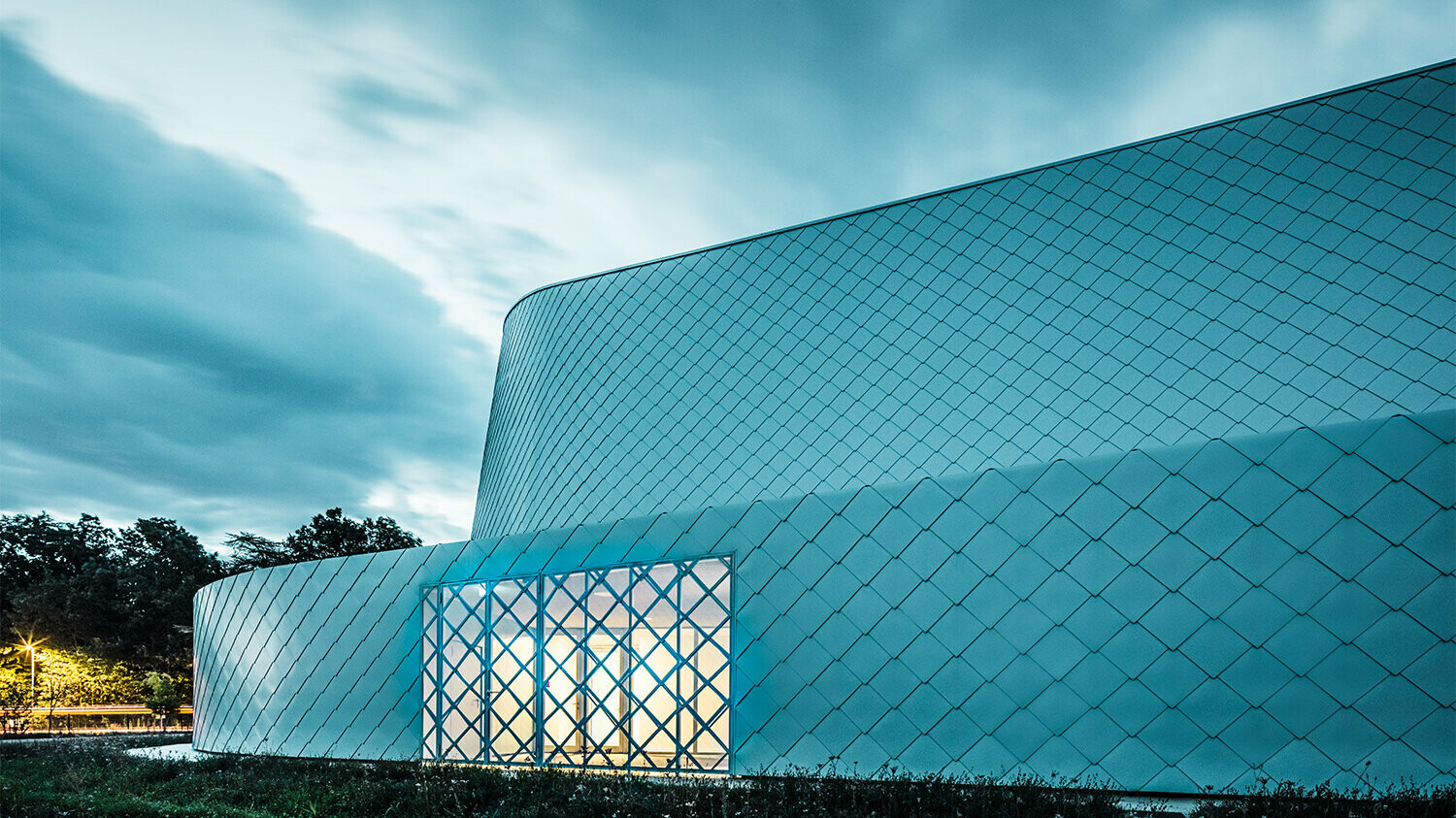 Lorsque le cabinet a remporté le concours pour la réalisation de la salle de sport de Basse-Goulaine, personne dans la petite commune n’aurait pu deviner qu’ils obtiendraient beaucoup plus que prévu : une architecture monochrome qui n’adhère pas au niveau fonctionnel et attire le regard par sa forme et sa surface inhabituelles. Un endroit où on aime faire du sport et participer avec ferveur à la compétition. Et une façade dynamique en losanges argentés dont les transitions fluides lui donnent l’apparence d’une peau, d’une étoffe.
