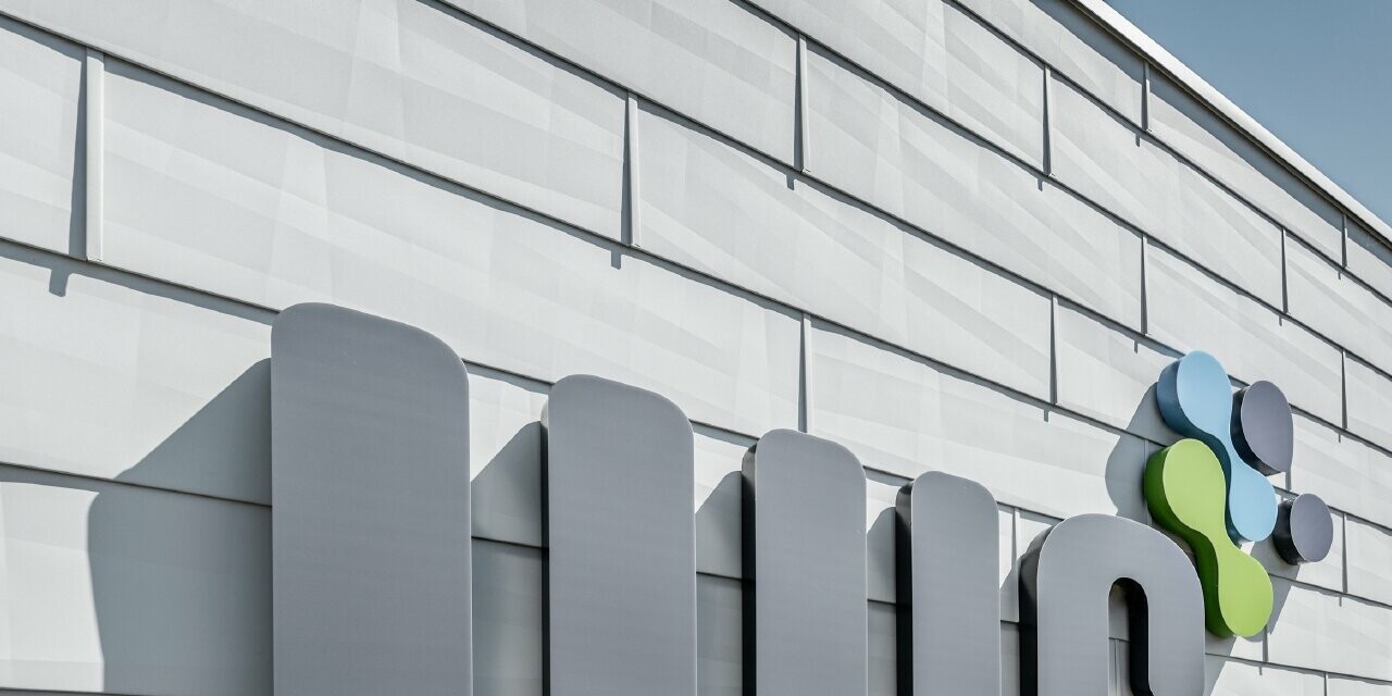 La façade du bâtiment de la société IT Management & Coaching Gmbh a été habillée avec le panneau de façade FX.12 PREFA couleur P.10 blanc PREFA.