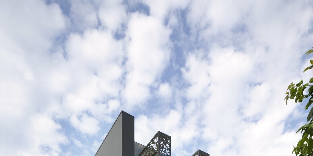 Bâtiment à la façade fleurie à Linz avec panneau composite en aluminium couleur gris profond