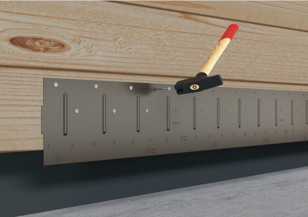 Plus la bande de départ est posée avec précision, plus il vous sera facile de poser correctement le système de façade PREFA. Il faut prendre en compte les repères prévus pour la couverture de façade PREFA concernée.