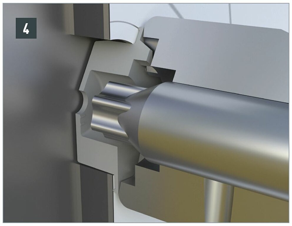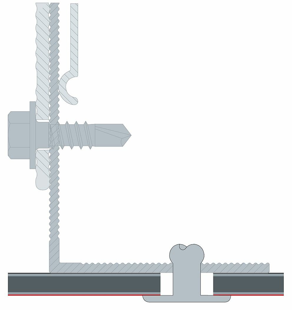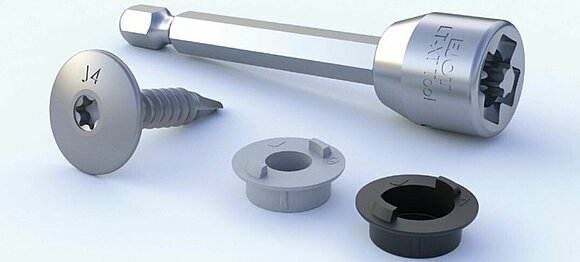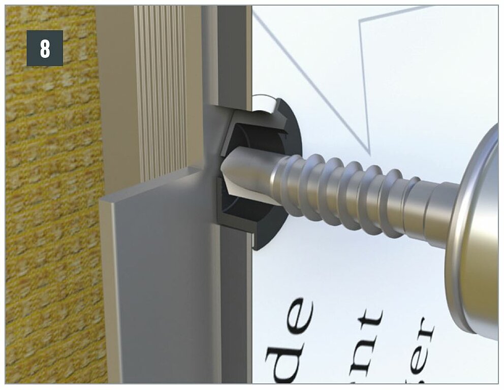 Le système de fixation mécanique par vissage se compose d’une vis de façade, d’un embout spécial impact LT-XT TX 25 et de douilles de guidage pour points fixes et coulissants assorties.