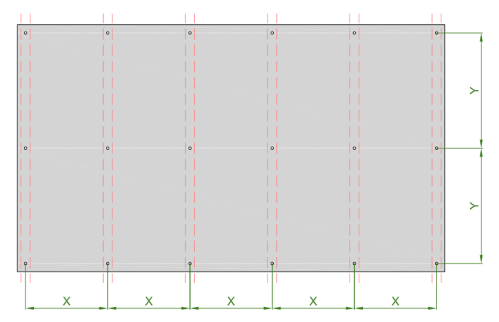 Les panneaux composites en aluminium PREFABOND peuvent être fixés mécaniquement aux sous-faces et également collés. Il est recommandé de ne pas dépasser la distance entre les rails de fixation dans une trame de 500×500 mm.