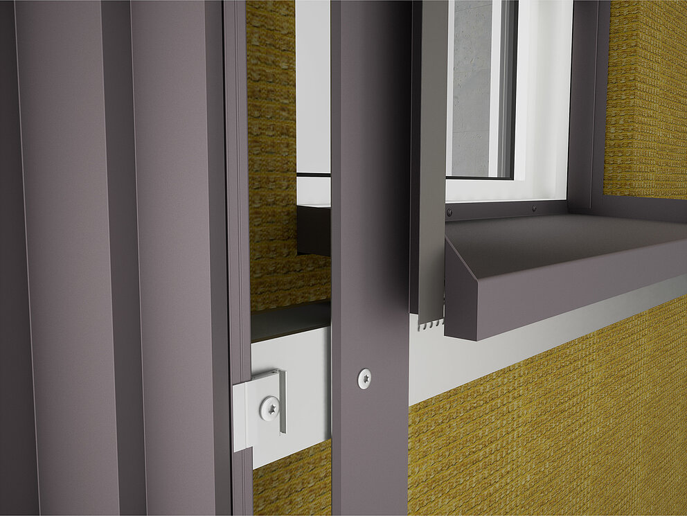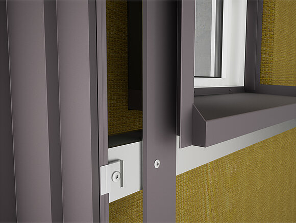La tablette de fenêtre peut maintenant être accrochée à la bande de maintien et montée sur le cadre de la fenêtre, en tenant compte des exigences spécifiques au chantier. Ensuite, les profils de jonction pour l’habillage de tableau latéral peuvent être montés.