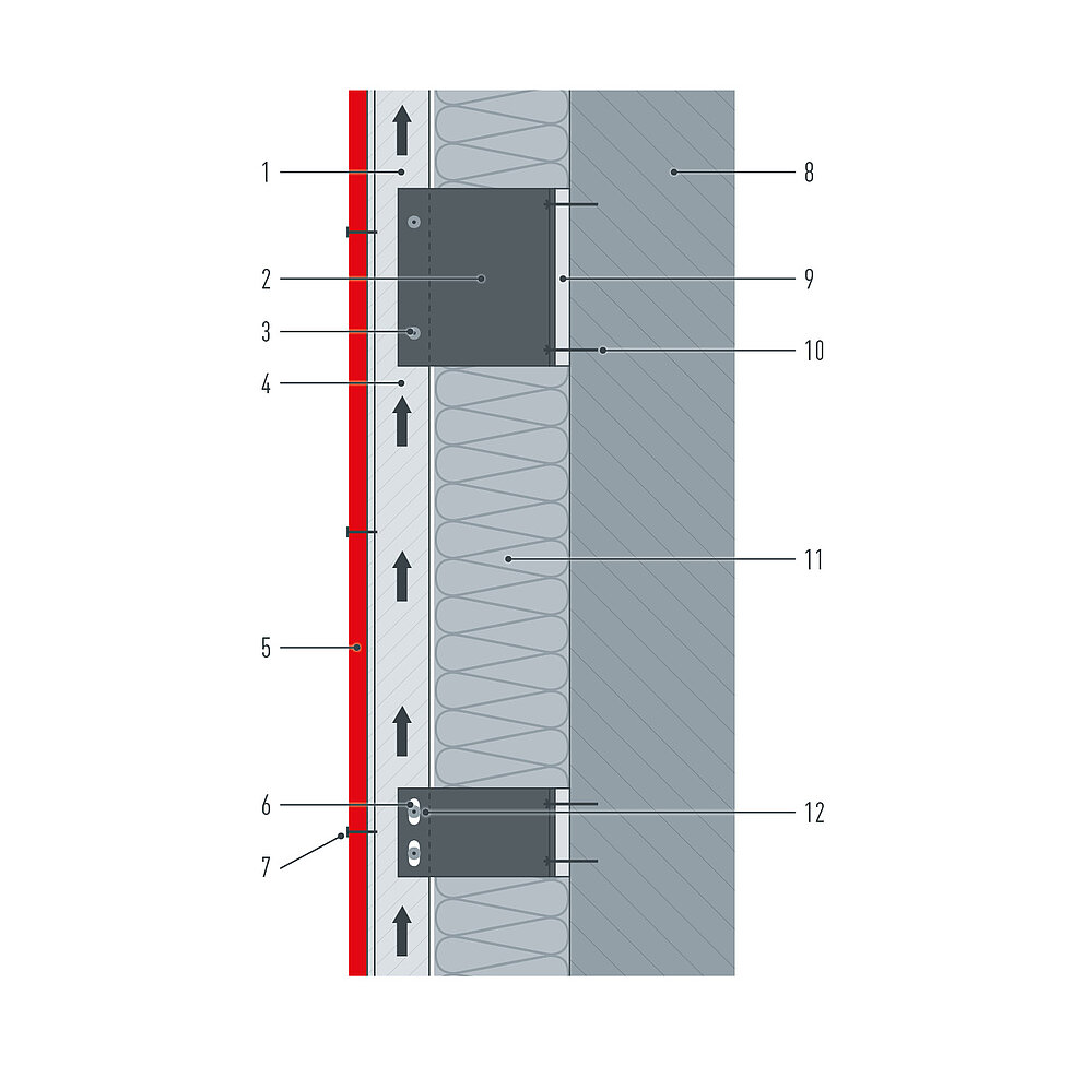 En fonction des conditions requises en matière de physique du bâtiment et de réglementation, il est possible d’installer les façades ventilées sur des murs isolés ou non.