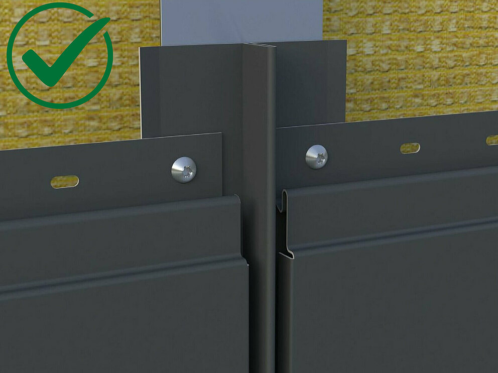 En cas de pose rectiligne, veillez à positionner le Siding sur un profil porteur de la sous-construction afin de pouvoir monter le profil de raccord T.