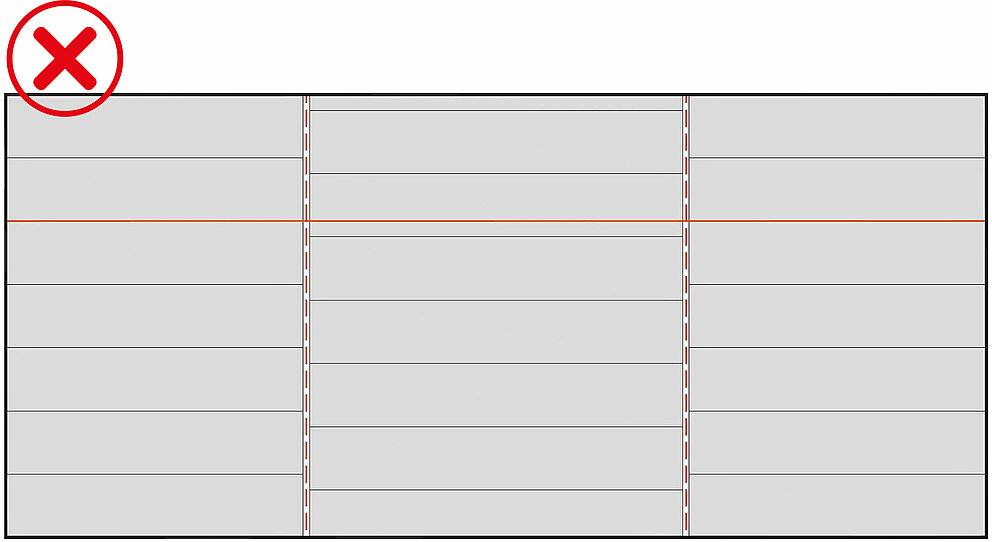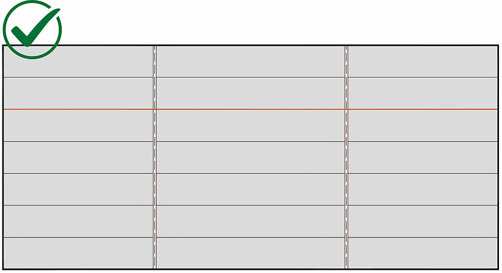 Dans les zones de discontinuité (par exemple, avec les joints), faites particulièrement attention à ce que la ligne et l’alignement soient conservés. Pour ce faire, nous vous conseillons de tracer la position des produits Siding, Siding.X et Siding perforé avec des lignes de contrôle à intervalles réguliers.