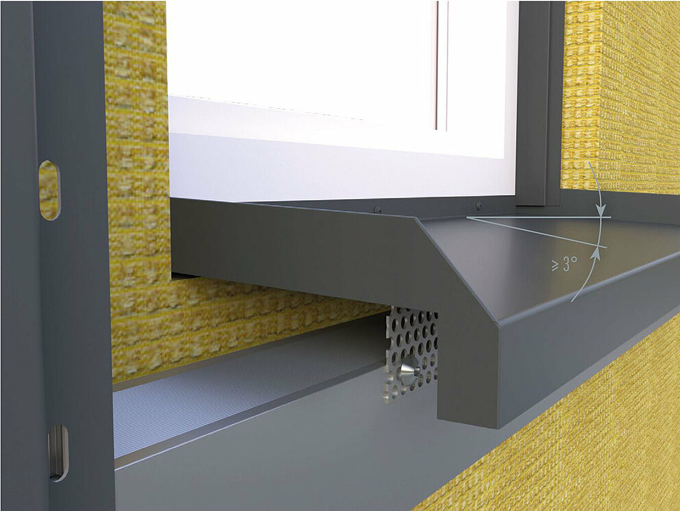 La tablette de fenêtre doit être posée avec une pente d’au moins 3 °. À cet égard, veuillez respecter les exigences en vigueur au niveau national.