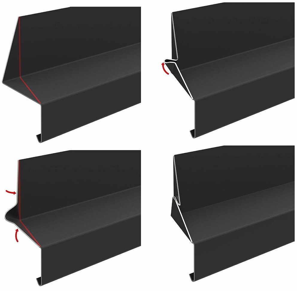 Afin d’augmenter la rigidité du Siding, il est recommandé de réaliser un rebord ou un recourbement. Veillez à ce que l’ouverture d’entrée d’air soit suffisante.