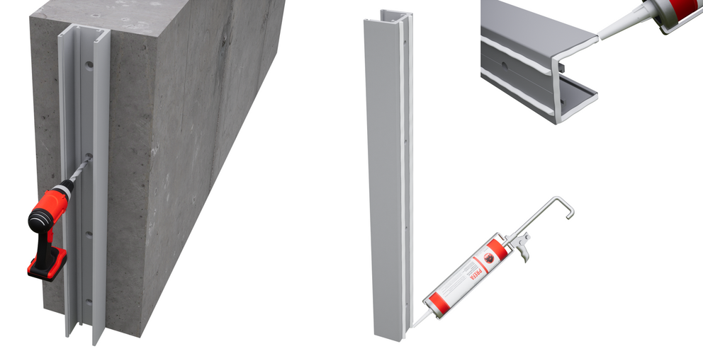En cas de contact direct avec du béton, nous vous conseillons de poser un enduit de protection sur la face arrière du profil en U.