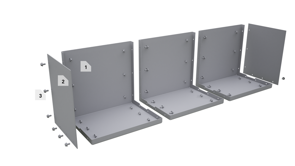 Les batardeaux avec joint intégré doivent être protégées contre la pollution et les rayons UV. Le mieux est de les stocker sur la console murale, les batardeaux étant séparés les uns des autres par des bandes de séparation. En outre, une cage de protection doit être installée.
