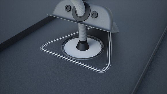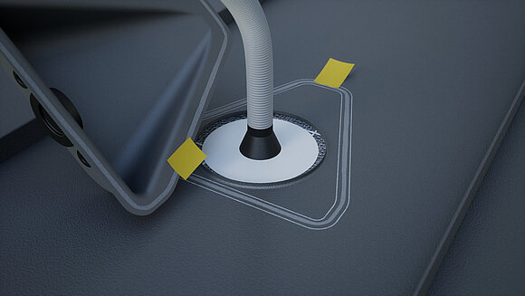 Percer le trou au milieu, coller le manchon de tuyau et insérer le tuyau ondulé. Nettoyer les surfaces à coller et les laisser sécher. Percer le passe-câbles avec un tournevis.