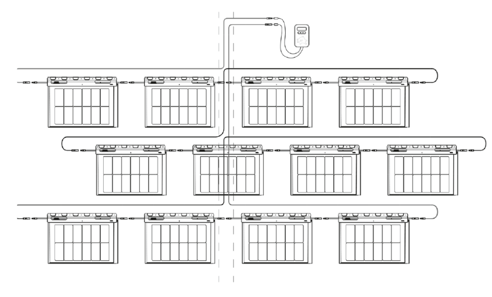 Pour ce faire, comme le montre la figure suivante, il convient de vérifier la tension entre la ligne d’alimentation de l’installation et la ligne de raccordement respective de la gamme actuelle de tuiles solaires. Le rôle du testeur de tension consiste juste à ce stade, à montrer la présence de tension, et non pas à savoir à combien elle s’élève. Répéter ce test pour chaque rangée terminée.