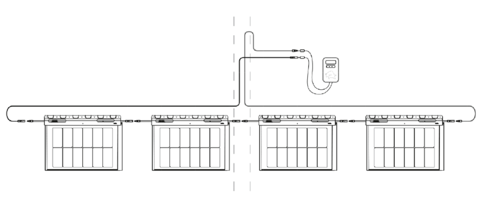 Une fois que toutes les rangées d’une chaîne ont été posées, effectuer un test de tension entre l’entrée et la sortie (voir figure au-dessous).
