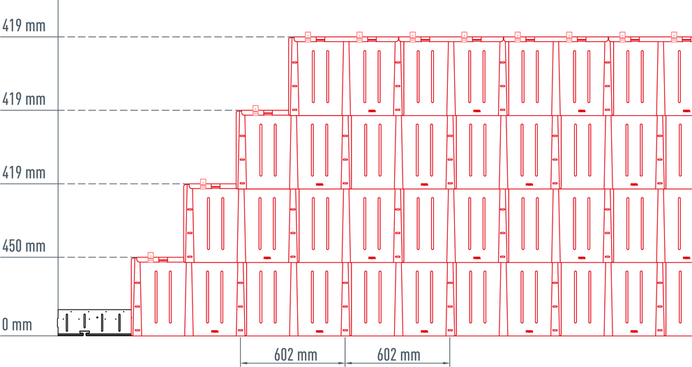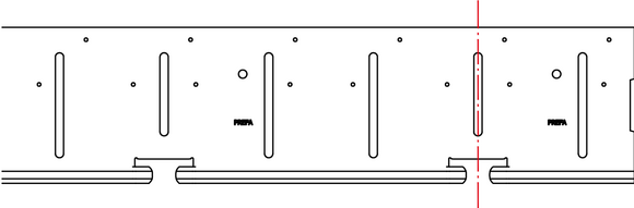 Le traçage de départ est réalisé au milieu du toit ou sur la rive. La bande de rive est définie en fonction du découpage prévu des tuiles. Le tracé vertical du trait carré est positionné soit au milieu d’une onde (variante B), soit au centre entre deux ondes (variante A). La marque de cordeau horizontale toujours à 419 mm vers le bord supérieur de la tuile. L’espacement entre les marques de cordeau à réaliser à la verticale doit être un multiple de 301 mm. En pratique, il faut réaliser une marque de cordeau à la verticale toutes les 5 tuiles (1 505 mm) ou 10 tuiles (3 010 mm). Vous devez veiller à ce que les traçages soient rectilignes sur toute leur longueur.