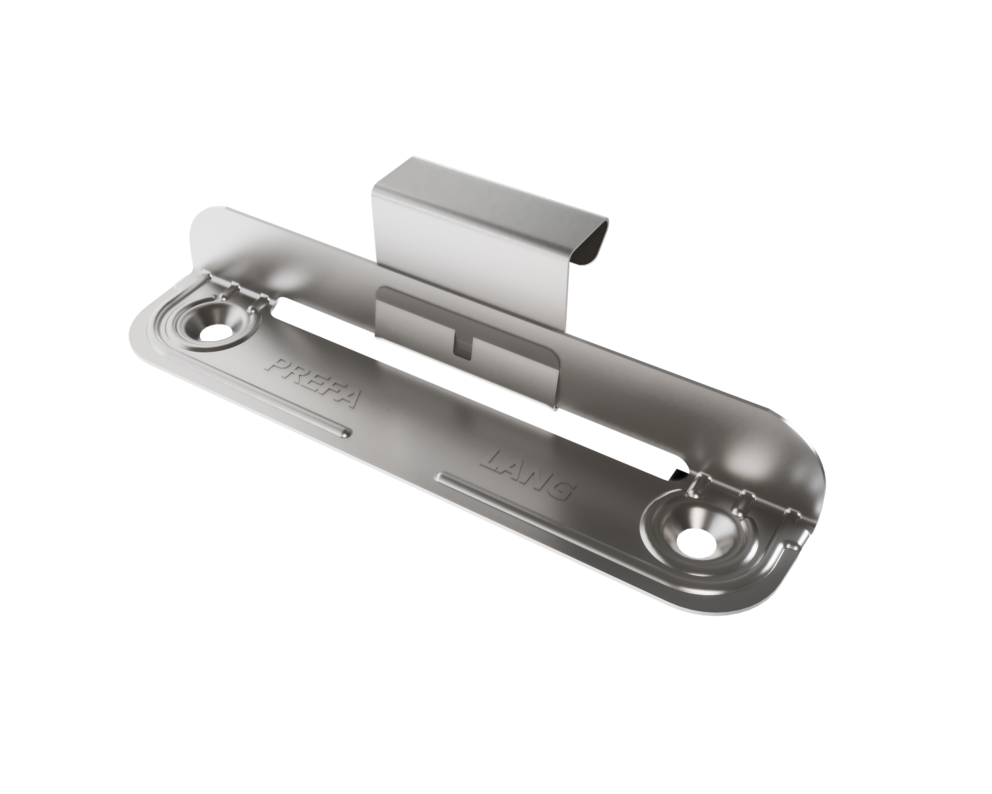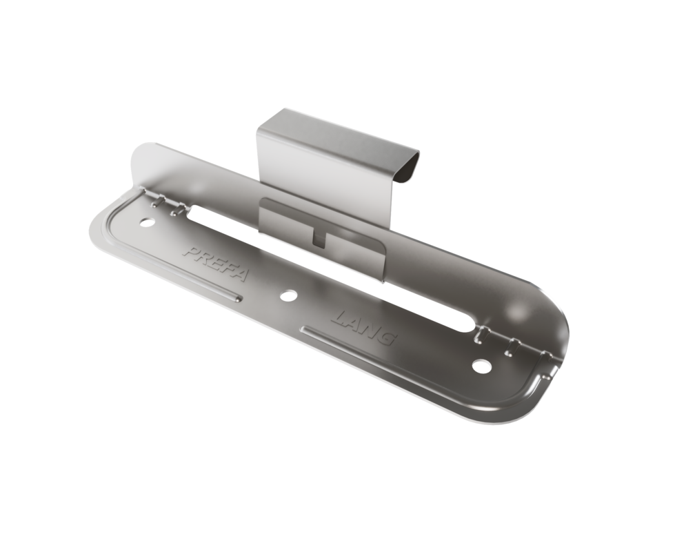 Les pattes fixes, pattes coulissantes et pattes longues coulissantes PREFA Niro conviennent uniquement pour les surfaces planes et fixes, et seulement pour des agrafes d’une hauteur de 25 mm !