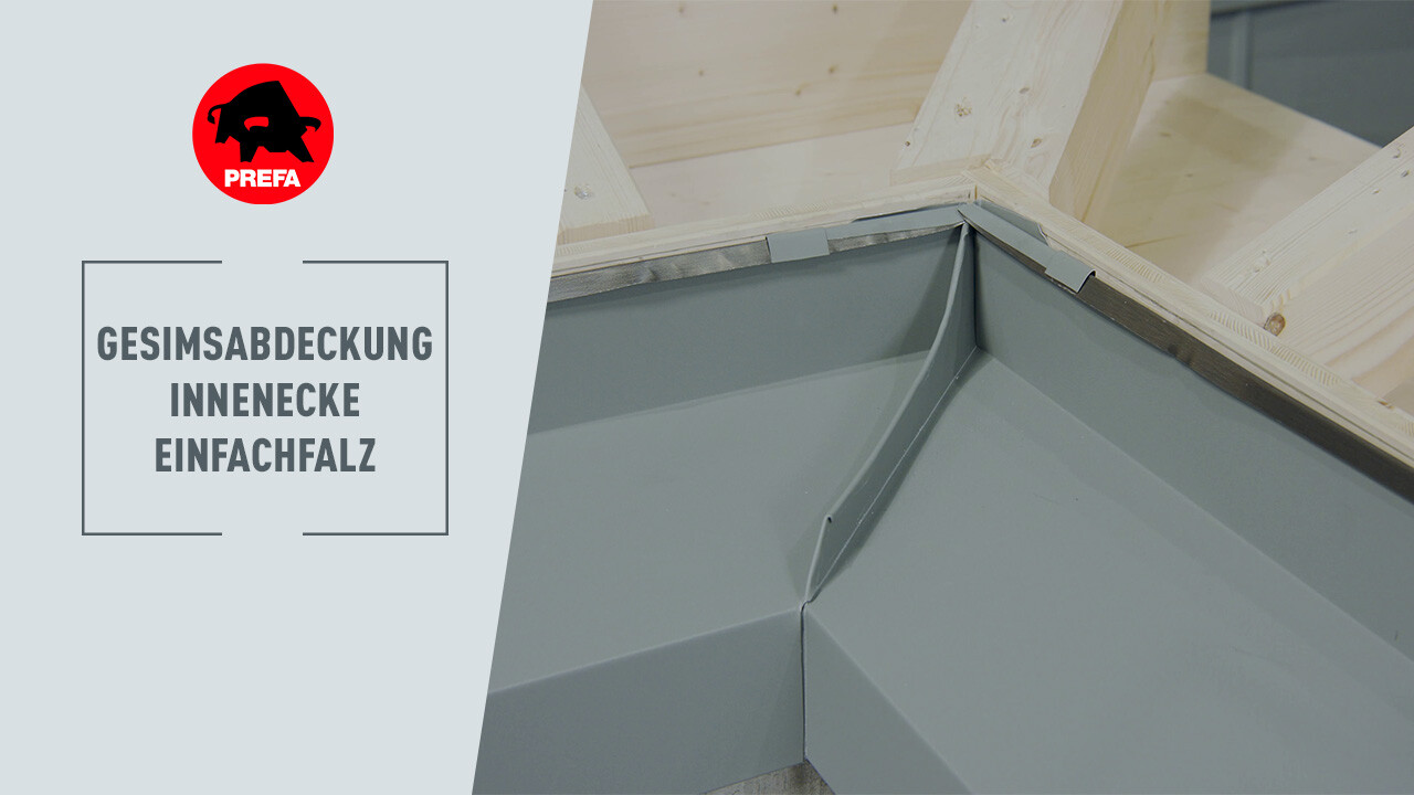 In diesem Video wird die Ausführung von der Verbindung einer Gesimsabdeckung - Innenecke als Einfachfalz gezeigt.