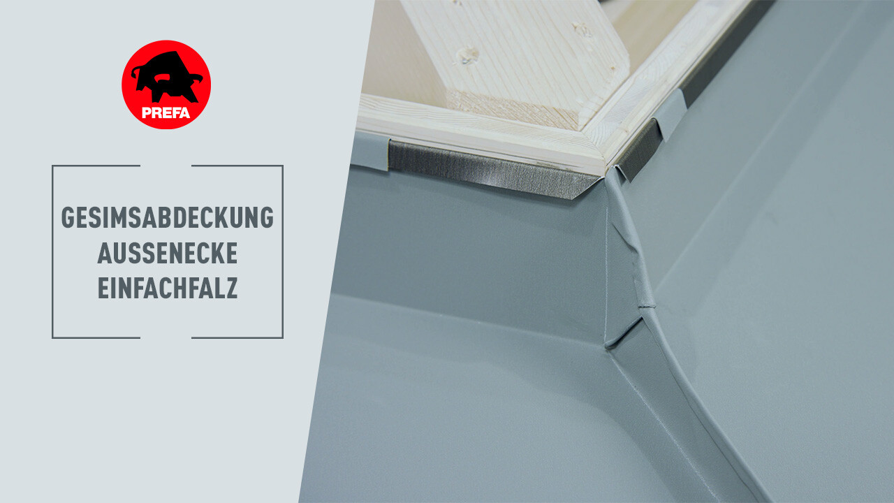 In diesem Video wird die Ausführung von der Verbindung einer Gesimsabdeckung - Außenecke als Einfachfalz gezeigt.