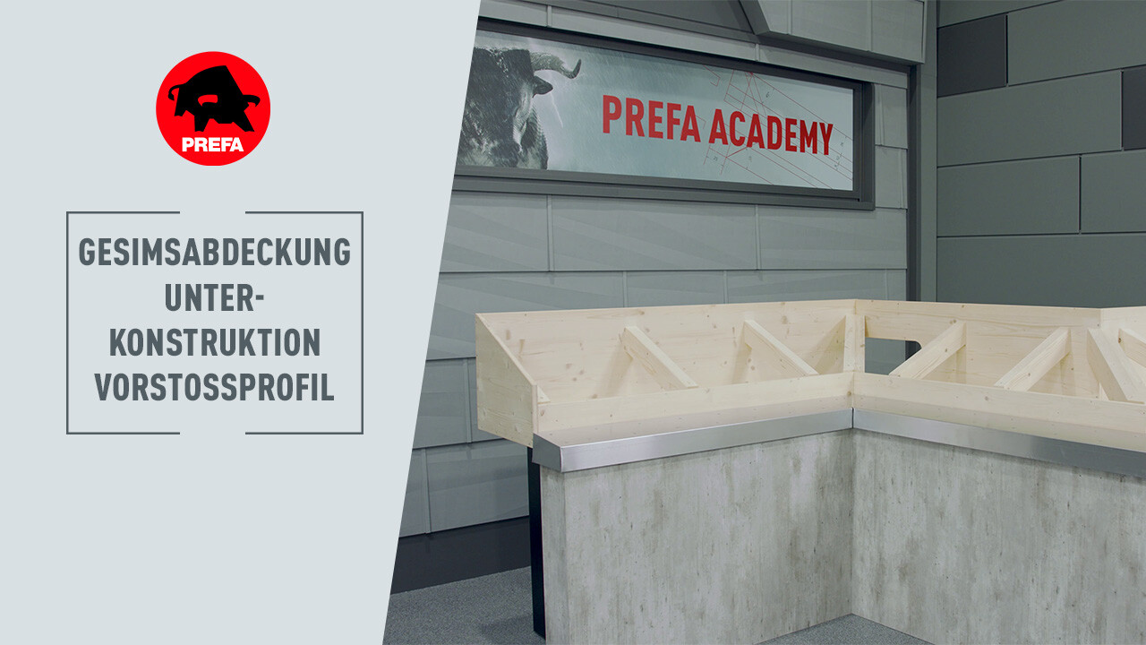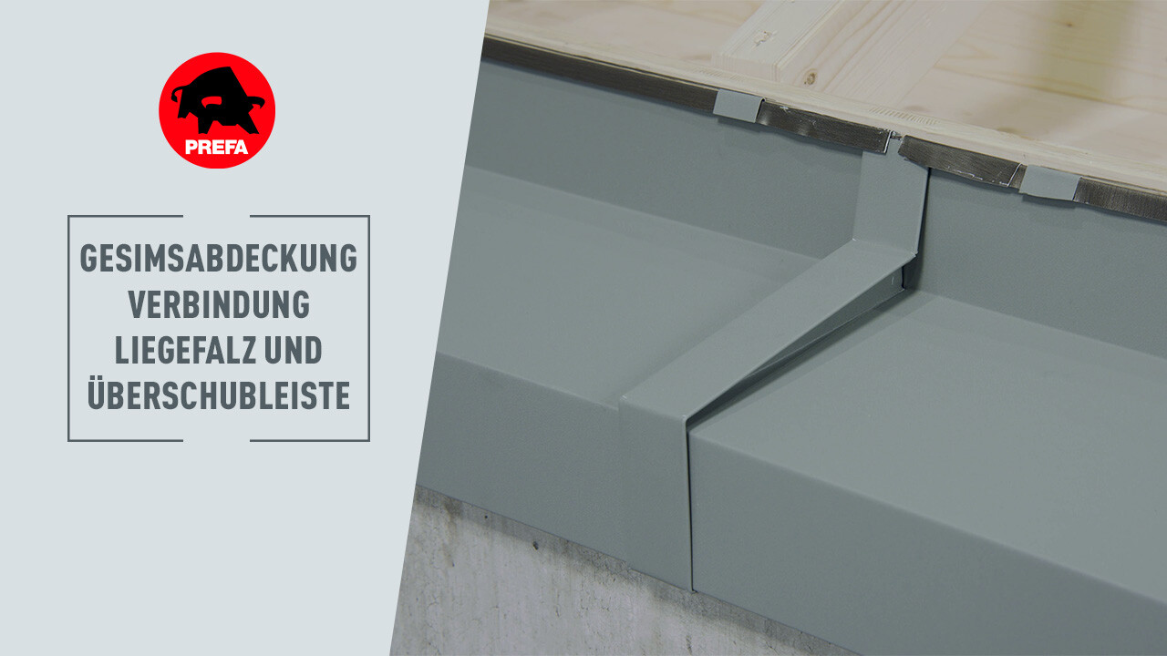In diesem Video wird die Verbindung der Gesimsabdeckung mittels Liegefalz und Überschubleiste gezeigt.
