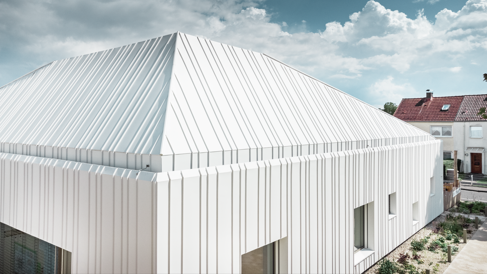 A Niederwerrn (DE), Jürgen Hauck e Herbert Osel di hjp architekten hanno progettato l’asilo infantile evangelico-luterano composto da tre edifici con una vistosa conformazione del tetto Prefalz in P.10 bianco puro, che secondo Hauck ricorda “tre bianche cime innevate”: Qui, fino a 125 bambini possono utilizzare gli alti spazi centrali - che permettono l’alternanza tra i diversi spazi tematici - come spazi di azione, movimento e bistrò. Durante le realizzazione del lucente paesaggio dei tetti, che spicca nettamente nei dintorni caratterizzati da case a schiera ed unifamiliari, è apparso chiaro come non fosse facile costruire le tre bianche vette nella piccola città della Baviera.