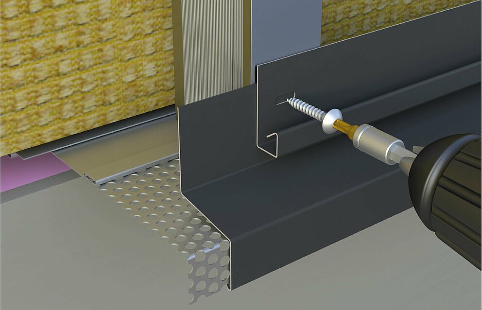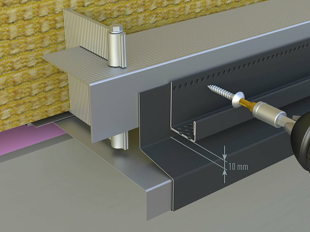 Nel caso di un punto fisso, la vite autofilettante viene avvitata direttamente attraverso il profilo di partenza o la canaletta di ventilazione. Per ottenere un punto scorrevole, praticare il necessario foro asolato con una punzonatrice per fori asolati.