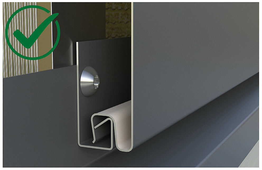 Un montaggio preciso è importante perché condiziona in modo significativo l'aspetto della facciata. Quanto più accurate sono la misurazione e il successivo montaggio dei profili, tanto più facile sarà l'esecuzione di una posa a regola d'arte. Assicurarsi che la ventilazione posteriore non sia ostacolata.