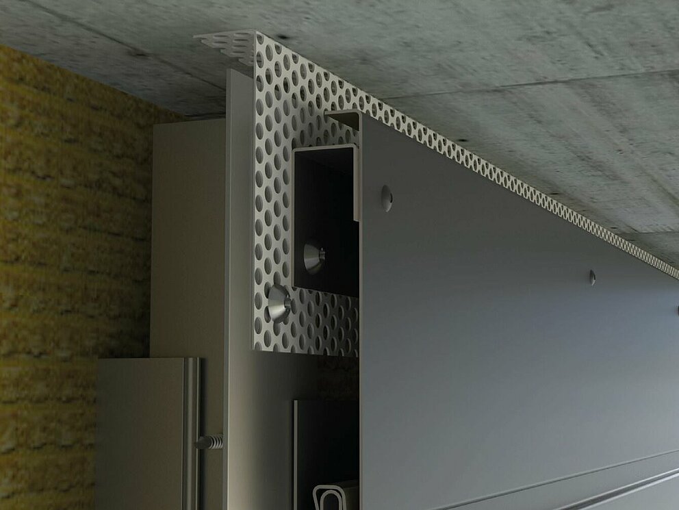 Per ventilare adeguatamente la facciata, è necessario prevedere un'apertura per l'aria di scarico in corrispondenza del raccordo alla testa. Montare un nastro forato con una piega a 90° in corrispondenza dell'apertura per l'aria di scarico (per es. sottotetto) per ottenere una maggiore rigidità.