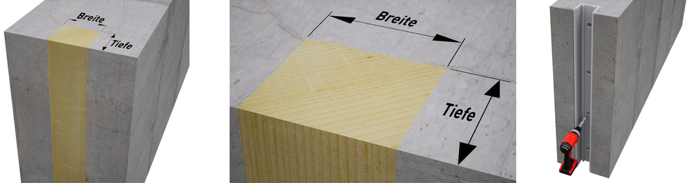 • L'incavo deve essere realizzato secondo la tabella con un distanziatore (dimensione del profilo a U +5 mm).