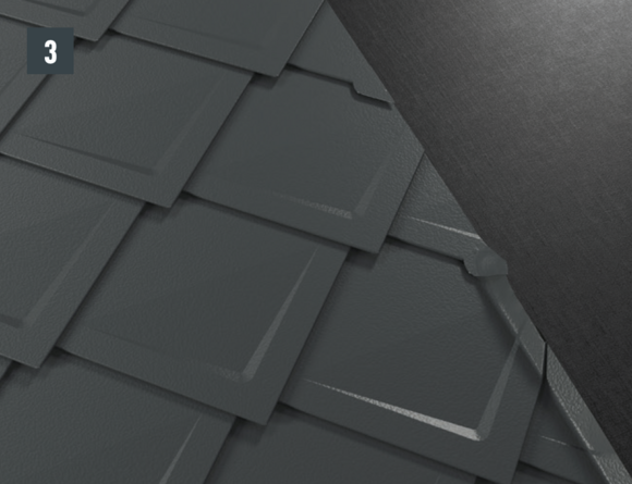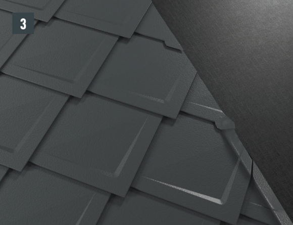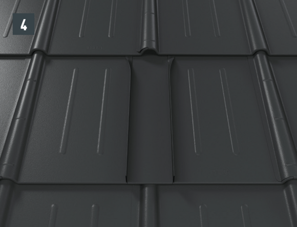 • La successiva fila di tegole viene agganciata all'elemento posteriore e poi coperta.