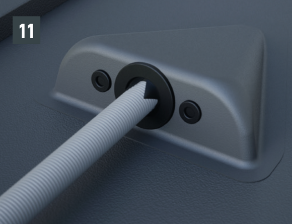 • Poi spingere in basso la guarnizione EPDM sulla conversa, in modo che il passaggio tra la conversa e il tubo torretta di aerazione sia sigillato.
