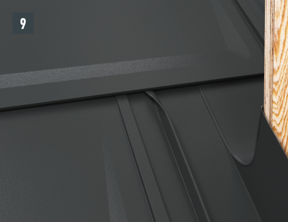 • Poi, la fila seguente di elementi di copertura PREFA può essere coperta su tutta la larghezza (fig. 9).