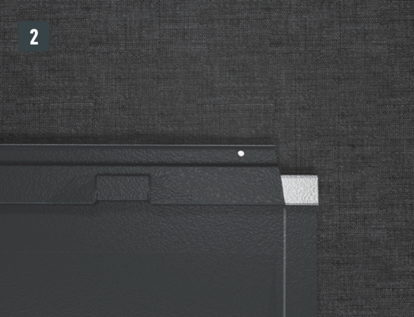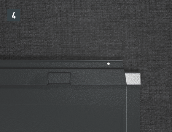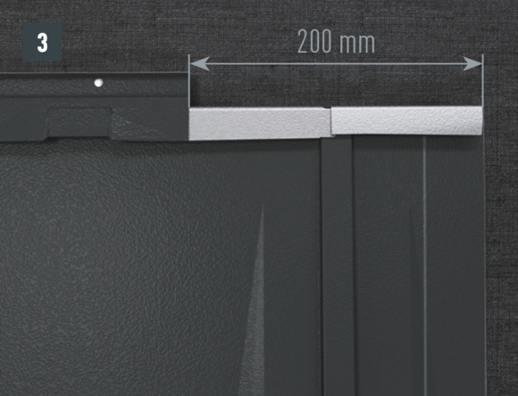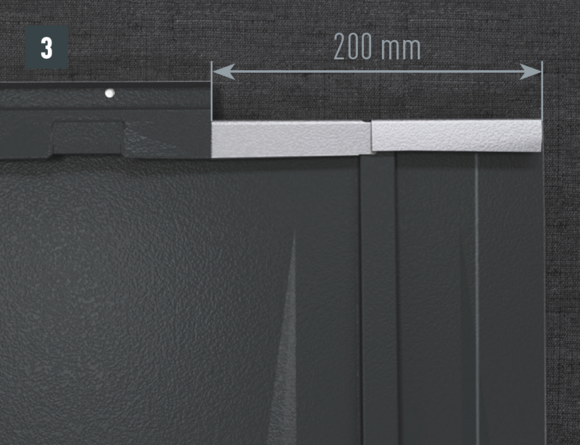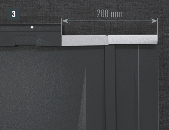 Nella zona superiore, l'elemento laterale dovrebbe sporgere sopra la bordatura superiore del pannello.