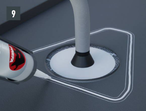 • Applicare la colla speciale su tutto il perimetro (Fig. 9)