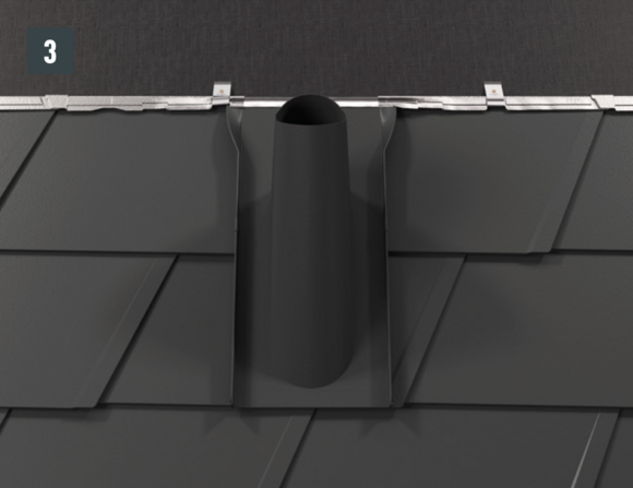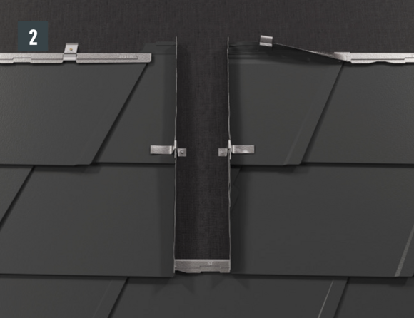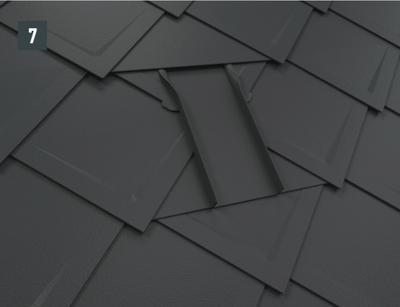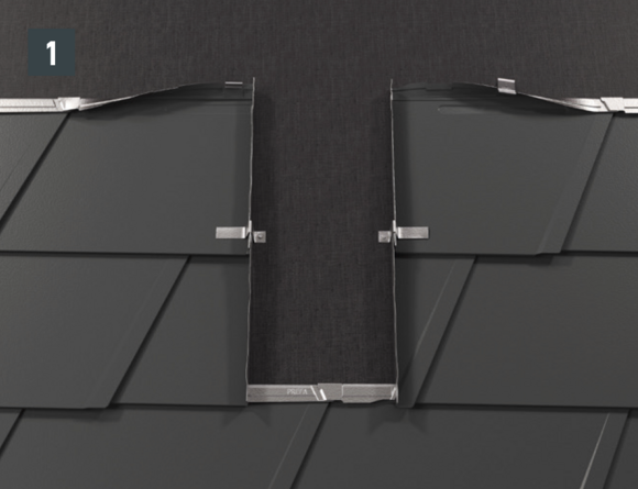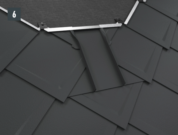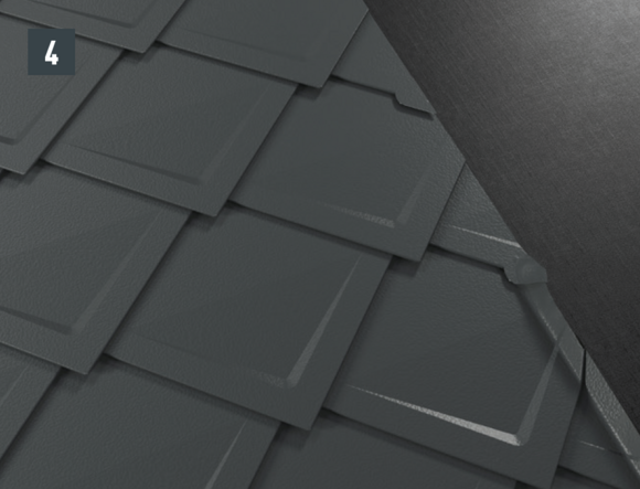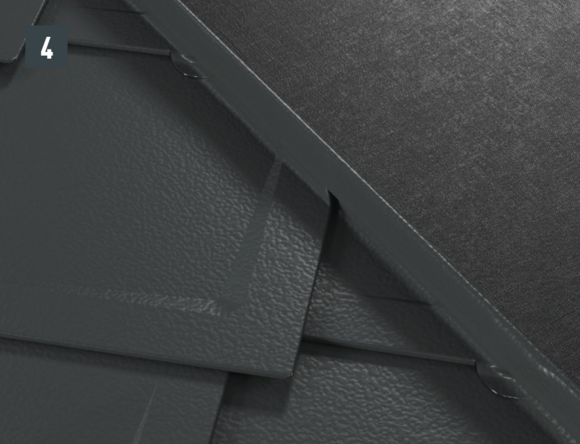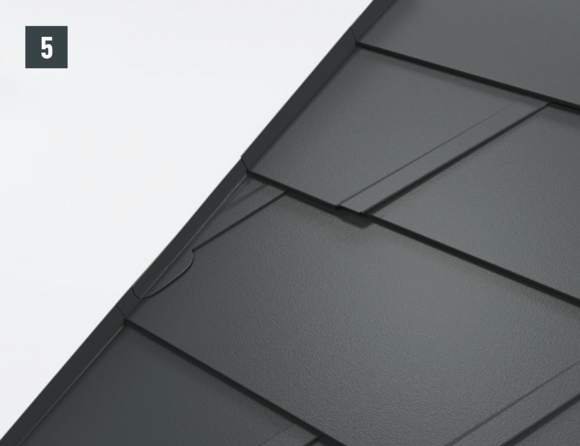 Per ottenere un'aggraffatura di aggancio orizzontale per l'inserimento a prova di pioggia della conversa dietro al passo uomo, si devono posare scaglie finali per scaglie 29 × 29 o 44 × 44.