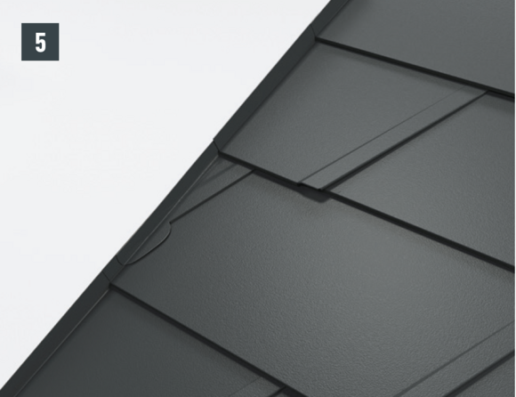 ATTENZIONE: Con una pendenza del tetto inferiore a 20°, le aggraffature trasversali e i giunti di sovrapposizione delle parti della conversa devono essere ulteriormente sigillati.
