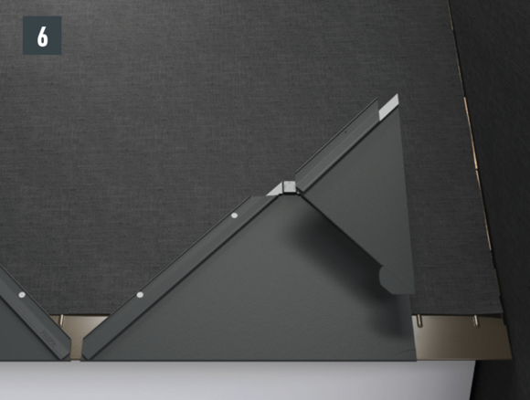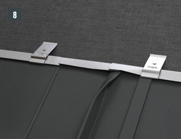 • Posizionare la conversa del passo uomo nei 30 mm di copertura alzati, agganciarla nella parte anteriore e chiudere. Per un fissaggio supplementare, montare una graffetta di ritorno su ogni aggraffatura (fig. 6).