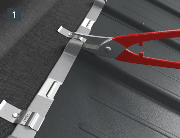 Nella zona del bordo ripiegato, sganciare l’aggraffatura superiore, in modo che resti un'aggraffatura per la staffa, e piegare la tegola R.16 o il pannello per tetto FX.12 di 30 mm ad angolo retto rispetto alla superficie del tetto (fig. 1 + 2).