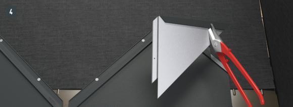 Nella zona del bordo ripiegato, sganciare l’aggraffatura superiore, in modo che resti un'aggraffatura per la staffa, e piegare la tegola R.16 o il pannello per tetto FX.12 di 30 mm ad angolo retto rispetto alla superficie del tetto (fig. 3 + 4).